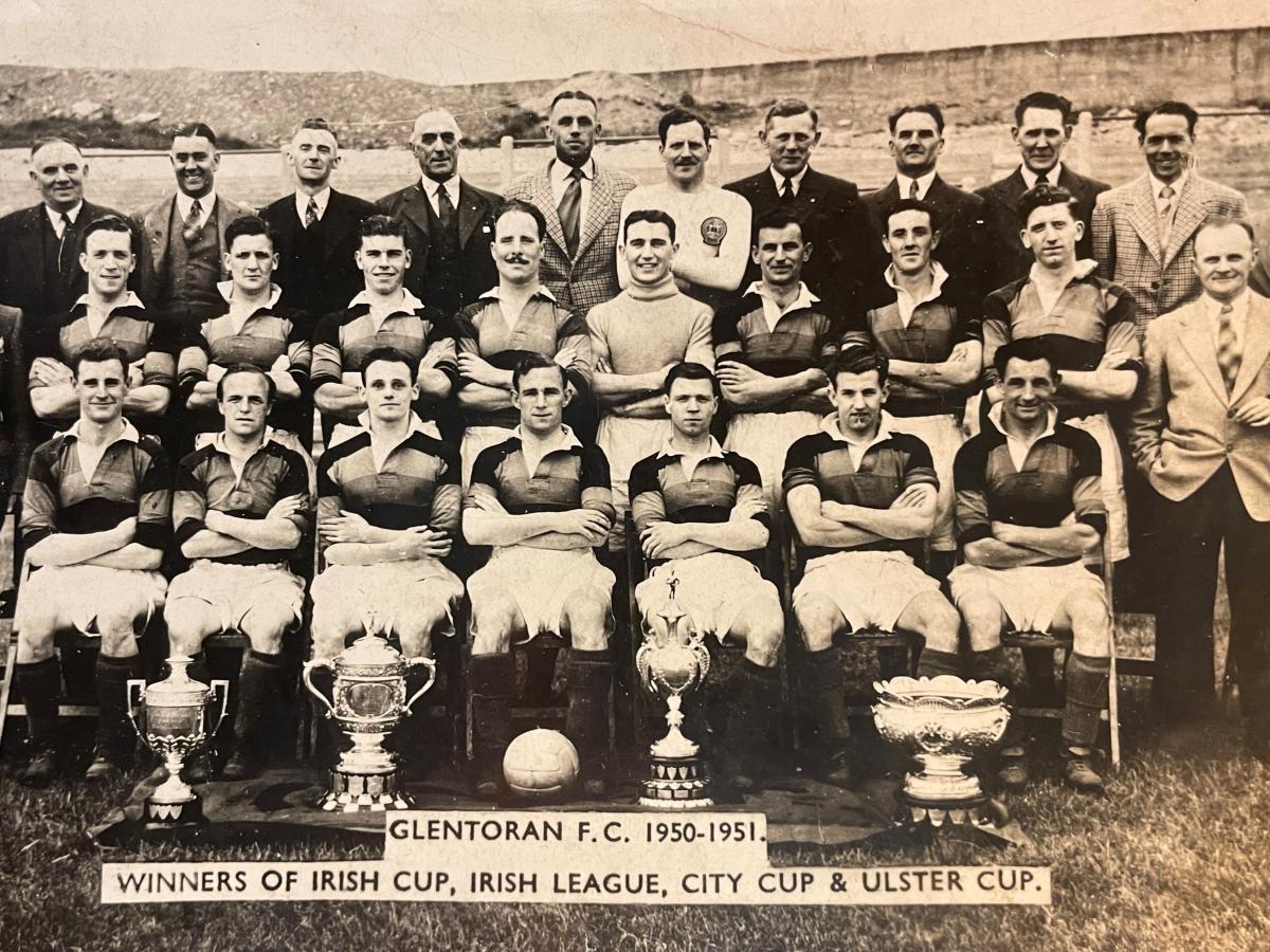 *George Allen Thompson is pictured second from the right in the front row of the legendary 1950-51 Glentoran squad.