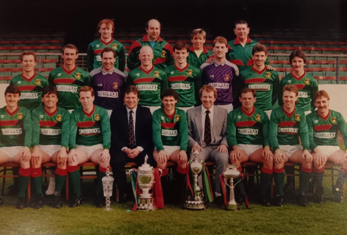 George Magill (back row), pictured with Glentoran’s 1987/88 squad.