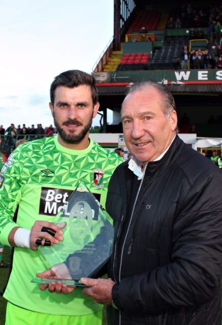 To mark the achievement, Elliott was presented with an inscribed crystal trophy on behalf of the Glentoran Board of Directors. This was presented to Elliott on the pitch by his illustrious predecessor in the Glentoran goal, Alan Paterson who made 517 appearances between 1972 and 1994. Prior to Elliott, “Paddy” held the record for most appearances by a Glentoran goalkeeper. Elliott will now have the Glentoran all time appearance record of 794 in his sights. We have no doubt the Glentoran support is all behind Elliott as he makes his next century of appearances.