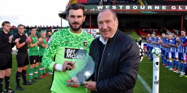 Prior to kick off in Friday night’s home game against Newry City, the club made a presentation to Elliott Morris in recognition of him reaching the incredible milestone of 700 first team appearances for Glentoran in our recent match at Mourneview Park. Elliott is now in his seventeenth season at Glentoran, a remarkable statistic in these days when such a high level of loyalty to one club is an increasingly rare commodity.