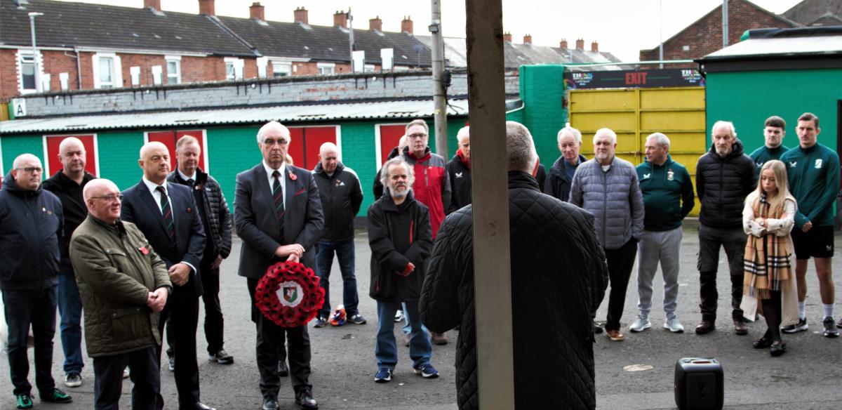 The service was conducted by Club Chaplain Rev David Thompson and a poppy wreath was laid on behalf of Glentoran by Club Chairman Colin Jess.