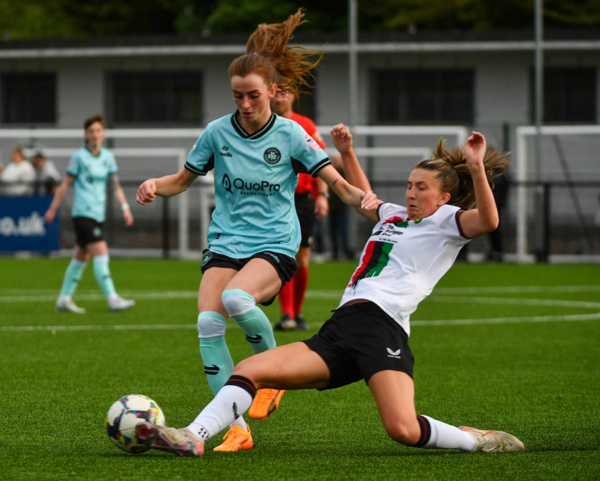 Two minutes after the break and the scores were level. There was a total mix up in the Glens area and an unmarked Caitlin McGuinness took advantage to shoot home. Then almost straight away the lead went to Cliftonville as a high speculative ball into the Glens area was met by Marissa Callaghan who was unchallenged as she sent a high, looping header past McKinnon and home.