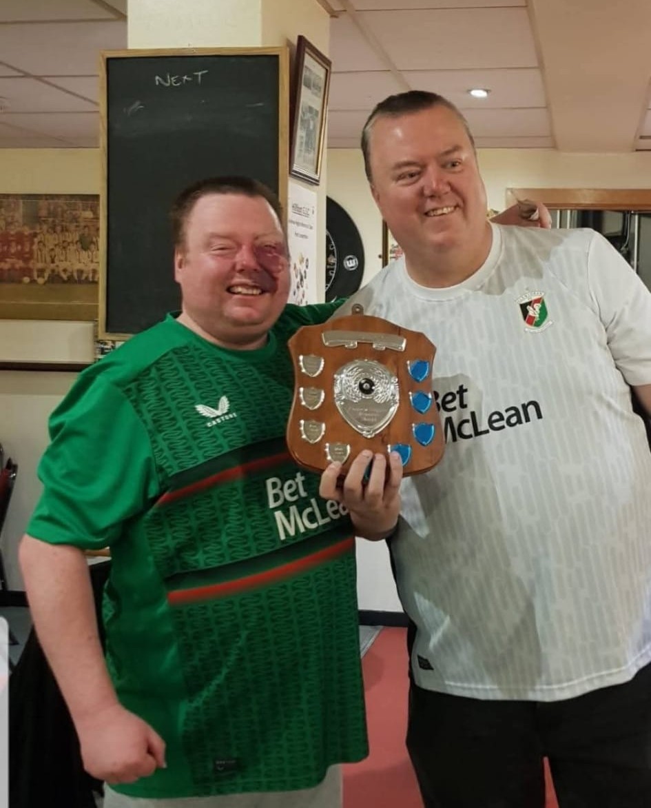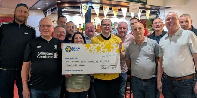 The Hillfoot members run a charity night in memory of their late friend and fellow Glentoran supporter Andrew Higgins who passed some years ago. Last month the club premises hosted an annual pool competition in aid of a chosen charity. This year the chosen charity was Marie Curie and this evening the club was proud to be able to present a cheque for £1889. An absolutely superb effort by the Hillfoot members and friends!