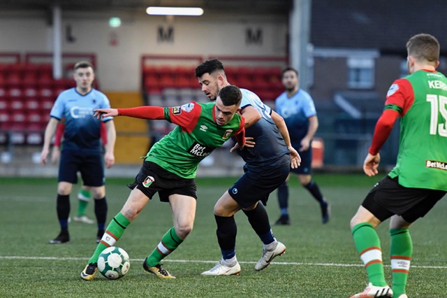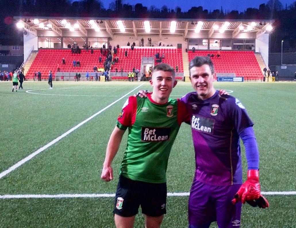 Institute upped their game after the interval but the Glentoran defensive line held firm. At the other end Gwiazda, whose surname means 'star' in Polish, nodded the ball down to Chris Gallagher but his 25 yard pile driver was just too high. On 60 minutes Darren Murray did brilliantly to side step a defender in the area but his goal bound shot was superbly saved by the 'Stute keeper. Joe McCready went close to levelling things up and then on 70 minutes Elliott Morris did well to block Michael McCrudden's shot. With 10 minutes remaining Gary Smyth made a double substitution and one of those introduced, Paul O'Neill, put the game to bed on 86 minutes. Curtis Allen did well to put the Institute right back under pressure and his attempted pass back to the keeper was intercepted by the speedy O'Neill. The young Glentoran striker rounded the keeper and showed great composure to cooly slot the ball home.