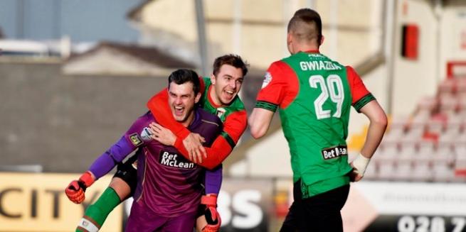 Glentoran: Morris, Kerr, Redman, Birney (c), Crowe, Pepper, Gallagher (Gordon 80), Gwiazda, McDaid (McCarthy 90), Allen & Murray (O'Neill 80)