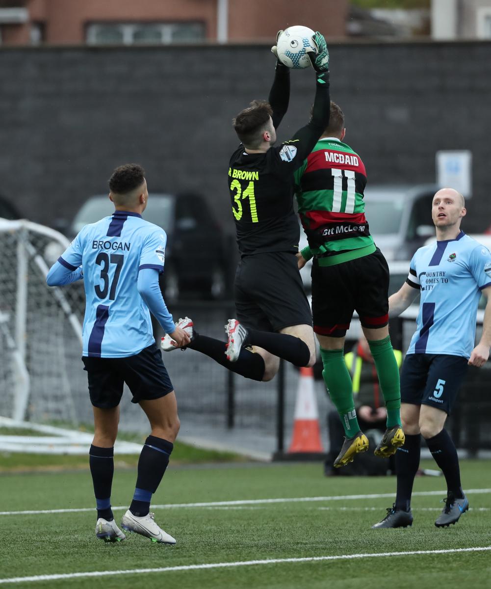 Glentoran did double their lead just before the break though. Hrvoje Plum was brought down a couple of yards out from the corner of the 18-yard box. Plum's curling shot around the 2-man wall looked to be creeping in at the near post. Brown got down well to keep it out but could only parry it to the unmarked Keith Cowan who side footed it home from 3 yards.