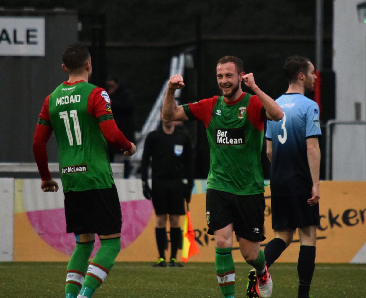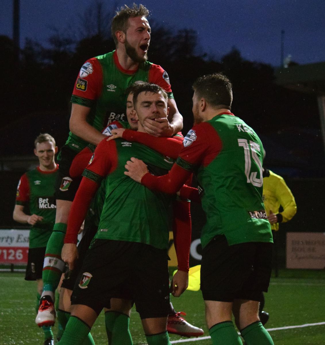 The Glens had three changes from last week’s draw with Crusaders. Nathan Kerr, now recovered from flu, came in for Willie Garrett at right back, Calum Birney replaced James Ferrin at centre half and Peter McMahon replaced the suspended John McGuigan on the left of midfield. Curtis Allen – unavailable last week – started on the bench as did – to the surprise of many supporters- Cricky Gallagher. We lined up in a 4-3-3 formation with Robbie McDaid flanked by McMahon and Dylan Davidson.
