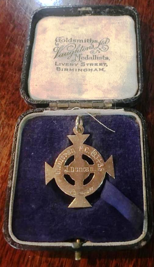 Stuart Cree, who is the grandson of Jimmy Duncan, had his medals at home in Scotland. As a boy he and the other kids used to play matches in the street for them! Latterly Stuart decided to present his grandfather’s medals to Sligo Rovers in recognition of the success he had achieved with them. Glentoran vice-president, Nigel McCarley has colleagues involved with Rovers who knew of his involvement with the Glens offered the Cup medal to us. And prior to a Sligo Rovers home fixture last season, Nigel was presented with the 1935 Irish Cup winner’s medal on the pitch.