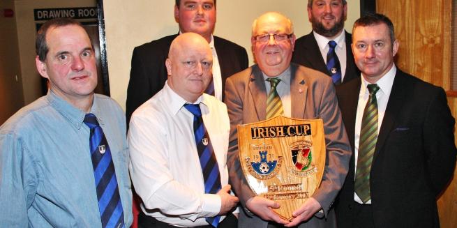 The officials of Killymoon Rangers made a presentation to their Glentoran counterparts on Saturday to mark the occasion of our 5th Round Irish Cup meeting at the Mid-Ulster Sports Arena near Cookstown.