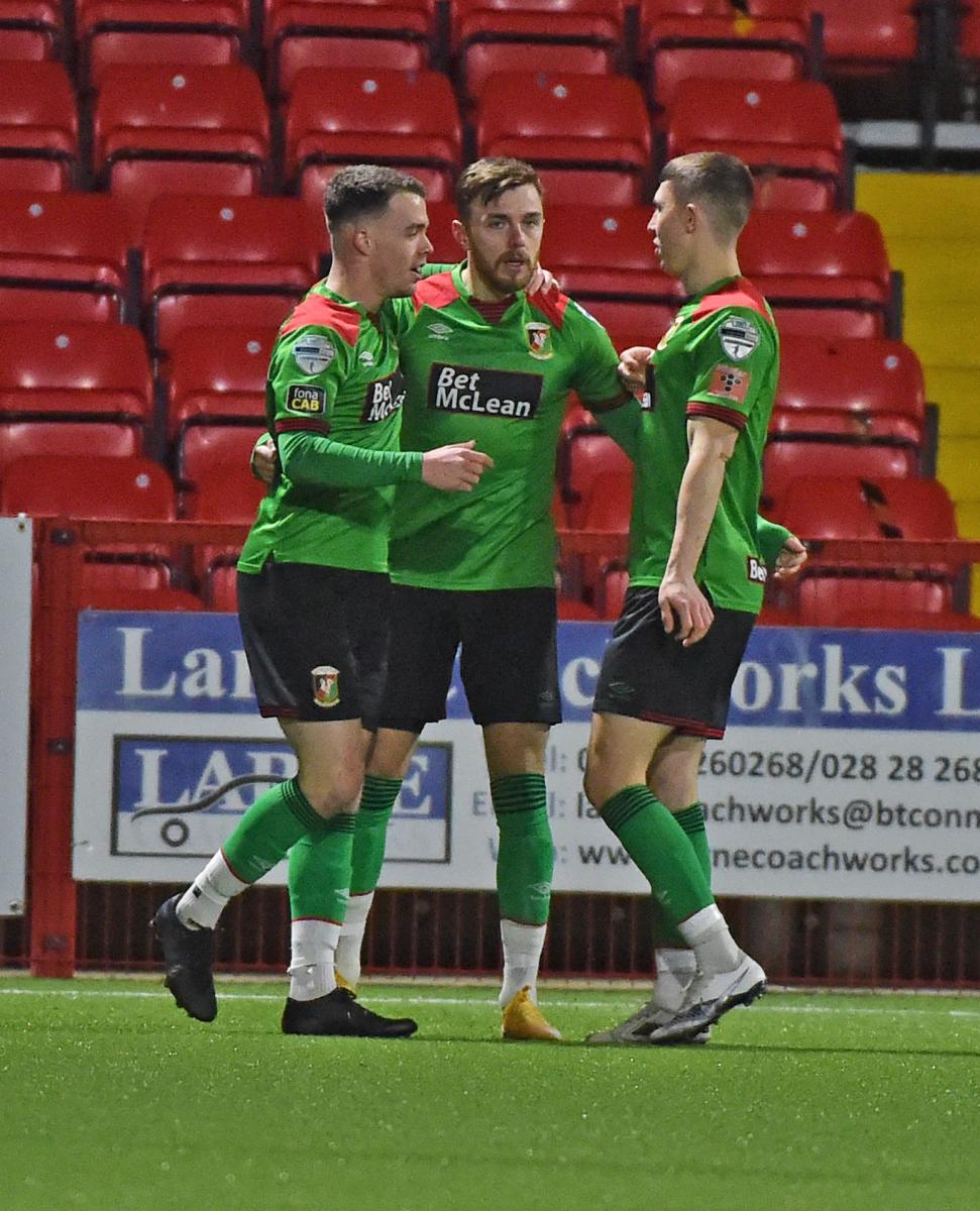 Glentoran’s first effort of note came after 28 minutes. A good run from Robbie McDaid led to Paul O’Neill receiving the ball from the edge of the box. The 21-year-old opted to shoot but his effort was comfortably collected by Devlin in goal.