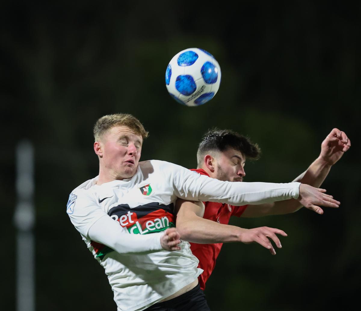 Both teams had chances over the following period with Jeff Hughes for Larne and Donnelly and McMenamin for the Glens. But the visitors’ night took another turn for the worst on 67 minutes with the sight of Rhys Marshall limping off with a dead leg, to be replaced by Willie Garrett following an unnecessarily aggressive challenge from Bonis.