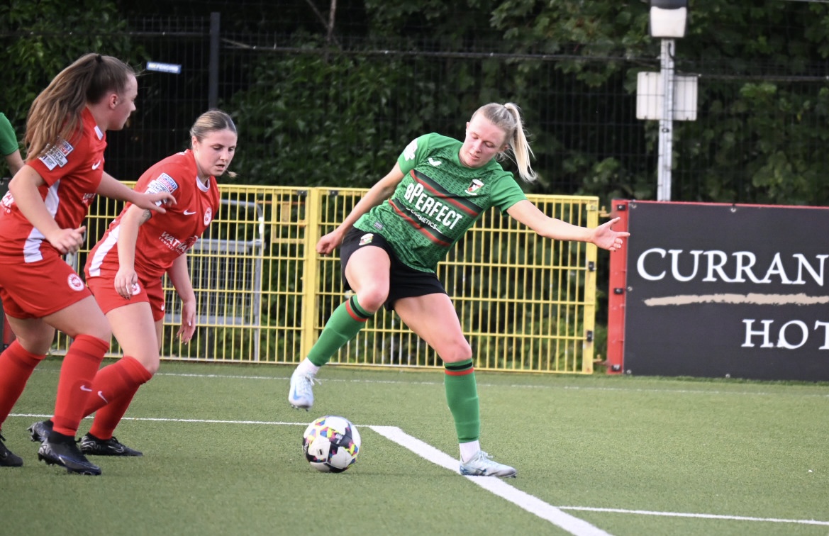 The Glens opened the scoring quickly when in the 7th minute when Emily Wilson was first to meet Jess Foy’s ball over the Larne defence to chip over Cerys Sharkey in the Larne goal.