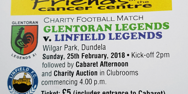 Glentoran Legends will face Linfield Legends at Wilgar Park on Sunday 25th February (kick off 2pm).
