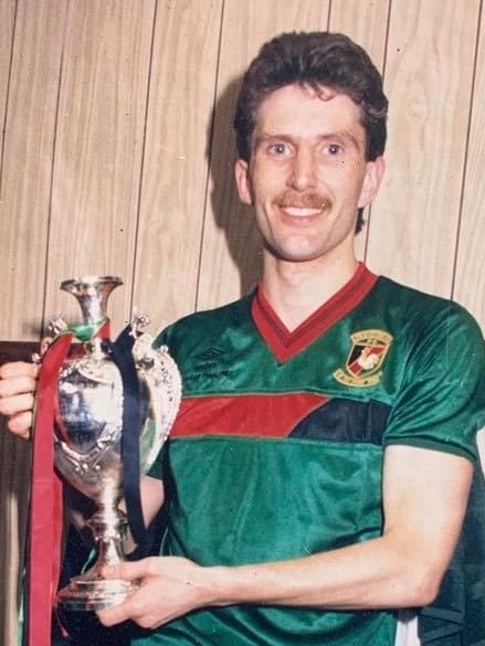 In fact, not only did he stay in the team for the rest of the season, but for the next eleven. During that time John won a total of 16 medals , including three championship medals and four Irish Cups. He also won an international cap for Northern Ireland in the Billy Bigham era. John’s last act for Glentoran was to lift the Gibson Cup as captain in May 1999 before leaving disappointingly early for Coleraine at the age of just 30 and the reigning NI Footballer of the Year for both the Castlereagh GSC and the NI Football Writers. A great player and leader of the club.
