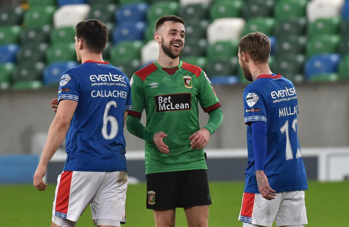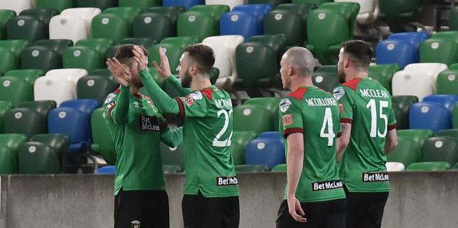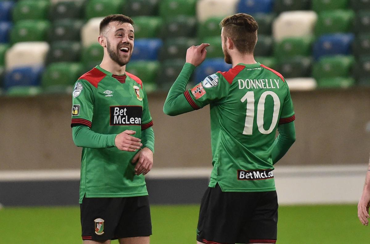 Glentoran: Dayle Coleing, Caolan Marron (Ciaran O’Connor 62), Luke McCullough, Patrick McClean, Marcus Kane, Rhys Marshall Hrvoje Plum, Chris Gallagher (Gael Bigirimana 58), Conor McMenamin, Robbie McDaid, Jay Donnelly (Rory Donnelly 80)
