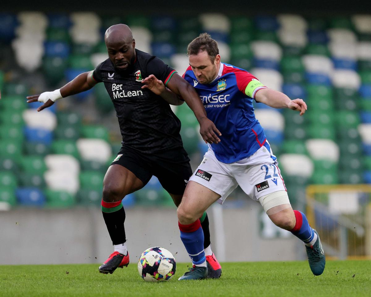 The game was fairly even in the early stages. First, Linfield’s Matthew Fitzpatrick couldn’t reach a great cross from Joel Cooper, then a few minutes later Glens’ David Fisher blasted over from an equally good run and cross from Daire O’Connor. Chris Johns then made a good save from an O’Connor shot.