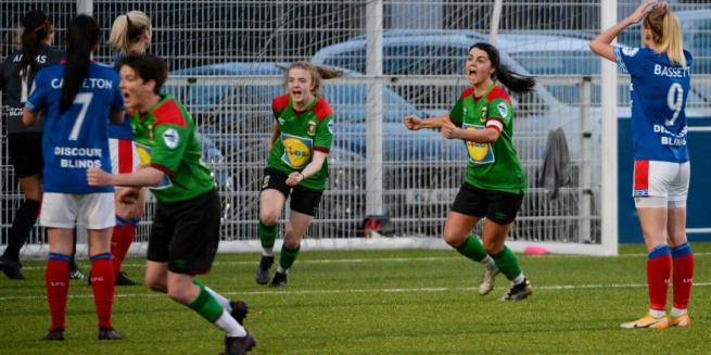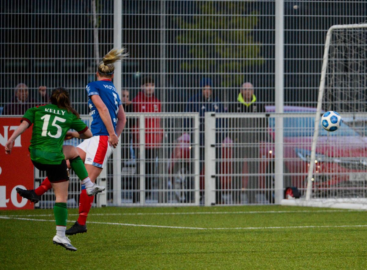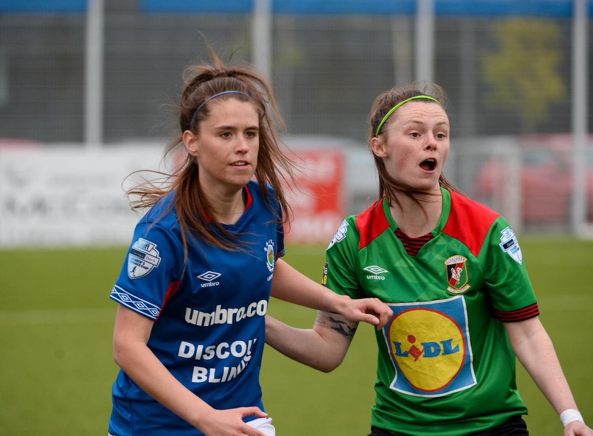 Skipper Jessica Foy fired over for the Glens in the 25th minute but it was the Blues who took the lead when Rebecca Bassett finished in style after Rebecca McKenna created the opening.