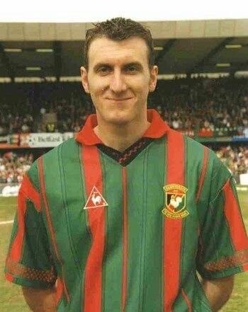 The immediate signings were very North West focused, not an area we’d been active in since the sixties. First, highly rated NI U21 keeper Declan Devine came in from Omagh Town. Next in was the high profile signing of midfielder and former League of Ireland Player of the Year Donal O’Brien from Derry City, and young teenage striker Roddy McDowell, who’d been released by Middlesbrough. Then came Scottish winger Eddie Cunnington and 30-year old English midfielder David Martindale, who had played over 200 games for Tranmere Rovers. Young players Darren Parker and Damian Kelly had established themselves as first teamers the previous season and were expected to figure heavily.