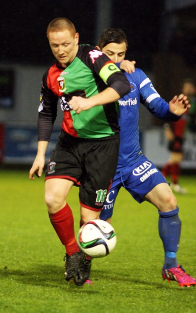 The 2014-15 season saw the clubs meet on four occasions. Jay Magee and Curtis Allen netted in the first encounter, a 2-2 draw at Ferney Park. We were back there for a League Cup quarter final tie in mid-November and again the game finished all square. Following the 1-1 draw and there being no goals in extra time it was the Mallards who progressed to the semi final via a penalty shoot-out. Two goals from Steven Gordon and one from Curtis Allen gave the Glens the points at the Oval in early December and just before the league split Glentoran recorded an even more emphatic victory; a 4-0 home win with Allen (2), Gordon and McCaffrey bagging the goals.