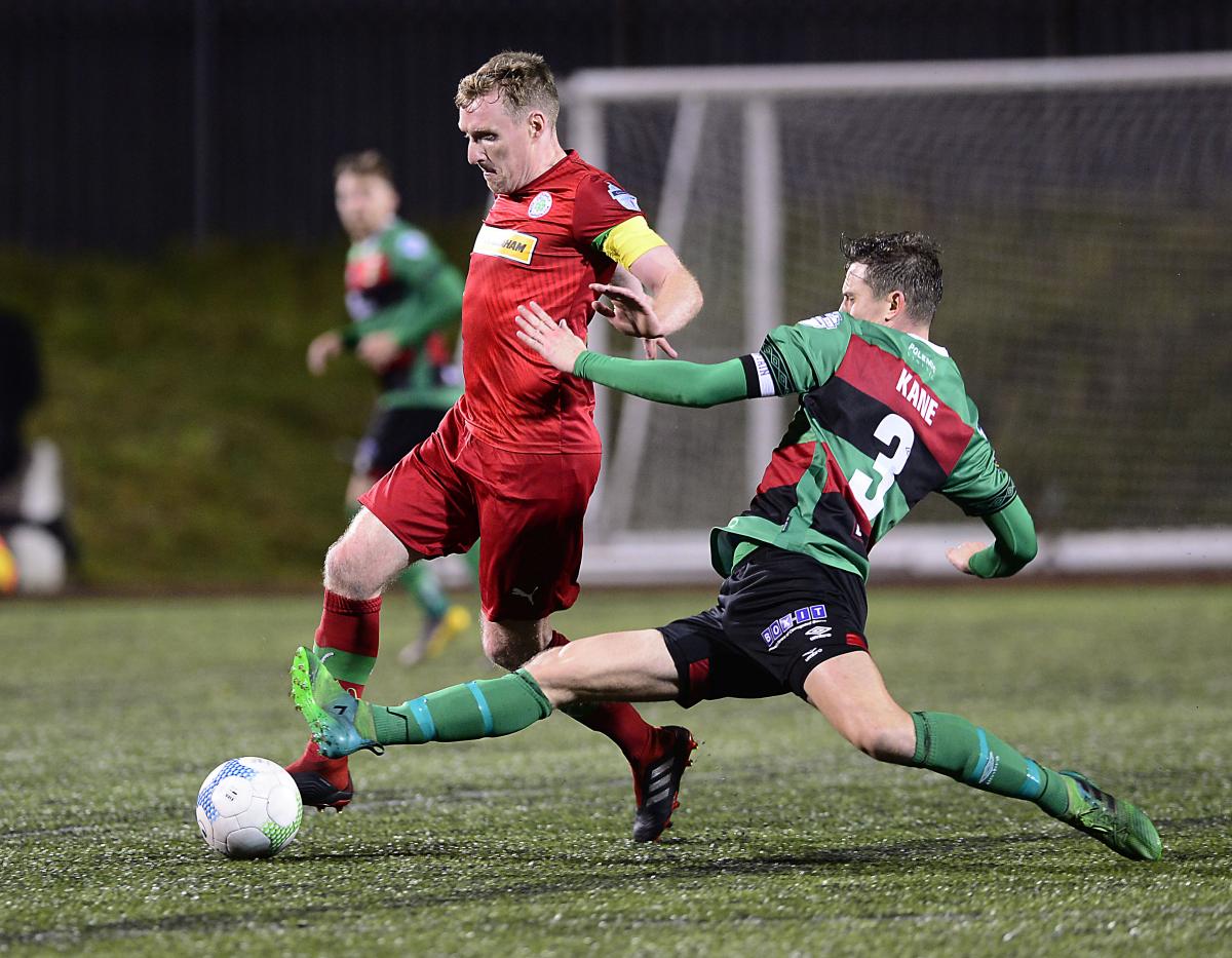 Mick McDermott: “I was very pleased with the result against Dungannon last week, and also with how we started and finished the game. We got a couple of good goals from Robbie early on and should have finished the match off in the first half. But we gave away what I thought was a poor goal and finished the half poorly. But we regrouped after half time and got the game won with a couple of good finishes from Paul. We can do better but maybe the fact that I was less than satisfied after that win shows how well we’re progressing since we lost badly away to Dungannon back in August. The two strikers did very well. We sometimes need to use Robbie wide, depending on the circumstances, but we know how effective he is through the middle and he deserved his hat trick for the performance he put in. Paul has also been excellent. He’s only nineteen but he’s got a great knack of getting important and difficult goals which is a reward for all the work he puts in, game after game.
