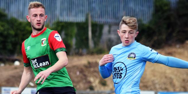 Gary Smyth said on Thursday evening after our first night training at our new venue at Aquinas: “I’ve got mixed feelings about Tuesday night at Newry. I’m disappointed we didn’t get the win but I never felt we were in any danger of losing the match. Obviously we wanted the win but I felt the conditions made it a bit of a lottery – I was very surprised it was on and when I went on to see the players at full time it was as heavy a pitch as I’ve ever experienced. That’s nothing to do with Newry City, a really good club. It was purely a weather thing I thought we started the game pretty well and their keeper made a great early save from Conor Pepper, who was excellent. Their opening goal was as big a deflection as you’ll see but after that we didn’t stop and the midfield in particular worked very hard and effectively all night so I was delighted with the effort we got. There were plenty of opportunities to get the ball down the flanks but too often there was no final ball. A couple of the players said they were losing their feet on the heavy surface when trying to get their cross in. Newry were quite direct and got the ball forward quickly but I didn’t feel they ever really threatened us.