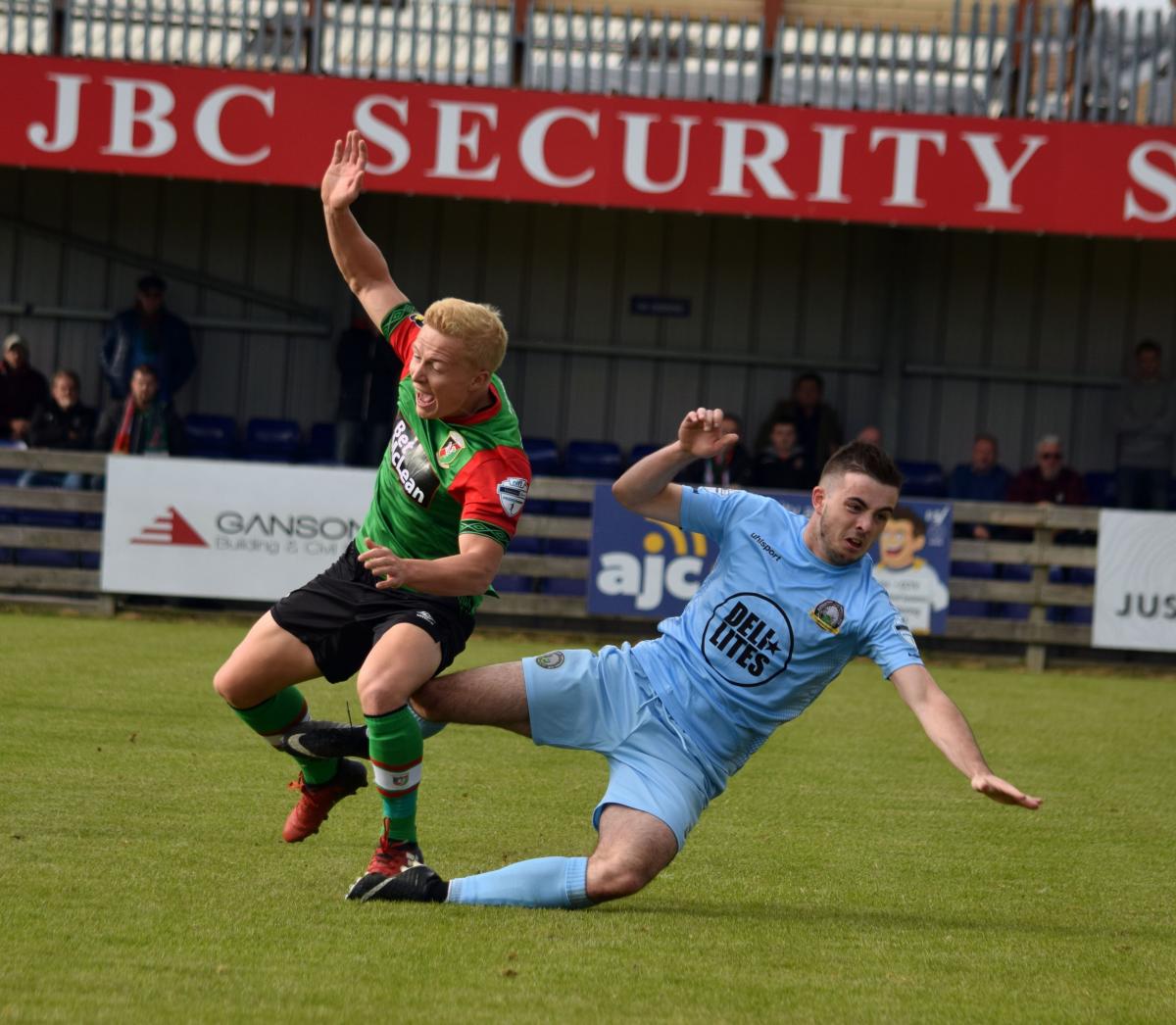 For Saturday I’m pleased to have Curtis back from his one match suspension but we have a couple of injuries. Ross Redman has had a nagging injury that’s now likely to keep him out for a few weeks. Joe Crowe is available after suspension but he went over badly on his ankle in training tonight so he’s very doubtful. Elliott feels he’s nearly ready but I do need to pay tribute to Dwayne Nelson who I thought played very well in the tricky conditions at Newry. I was also pleased with Gavin Peers getting his first start and I thought he did well. He’s still finding his feet but his attitude is excellent and I’m very confident that after 2 or 3 more games everyone will see what a great addition he’ll be to our squad.”