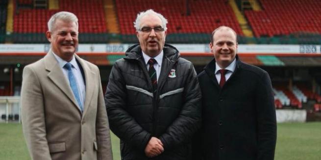 Glentoran Chairman Colin Jess, was delighted to welcome both the Rt Hon. Stuart Andrew MP, United Kingdom Secretary of State for Sport and Gordon Lyons MLA, Northern Ireland Minister for Communities, to The Bet McLean Oval today as part of a series of meetings discussing the delivery of Sub-Regional Stadia Funding. Also in attendance were David Brooks MLA (East Belfast), Gerard Lawlor, Chief Executive Officer of the Northern Ireland Football League and Patrick Nelson, Chief Executive of the Irish Football Association.