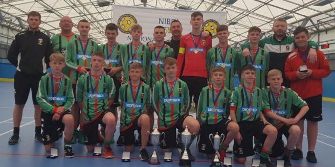 Glentoran U12s made up for the disappointment of their NIBFA Cup Final def. eat by hitting Maiden City for four in Cookstown in the National League Cup Final. The goals came from Jay Harvey, Rhys Walsh, Jack McCosh and Jack Hastings.