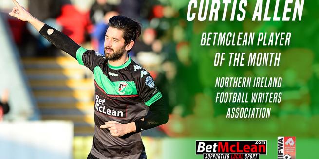 GLENTORAN striker Curtis Allen has been named BetMcLean Player of the Month by the Northern Ireland Football Writers Association.