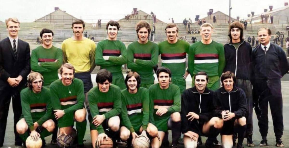 Tommy (fourth left back row) in one of our final visits to Grosvenor Park in 1970 with the league winning team.