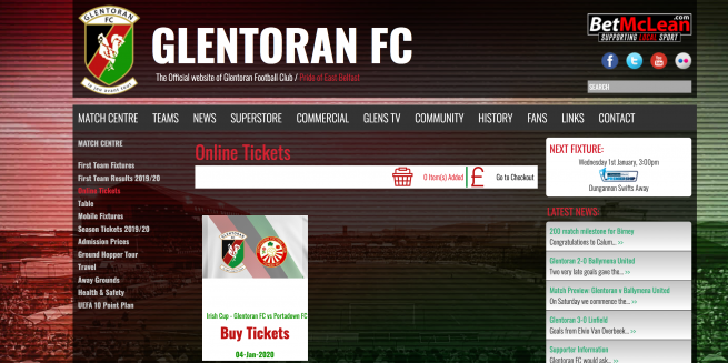E-Ticket queries should be directed to secretary@glentoran.com