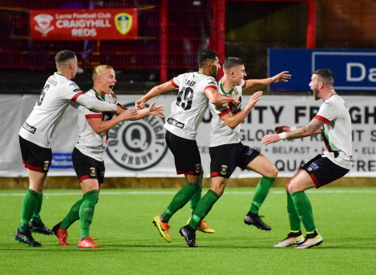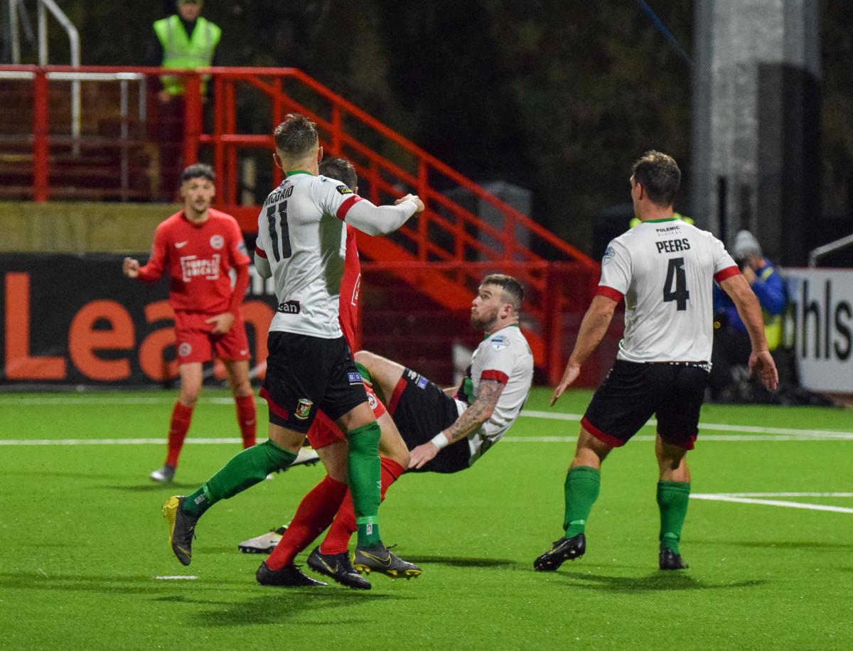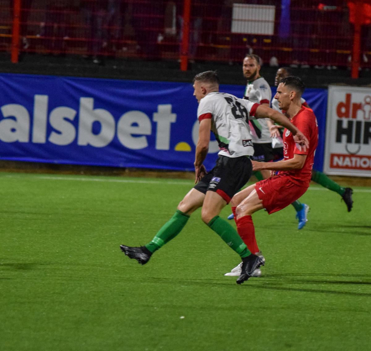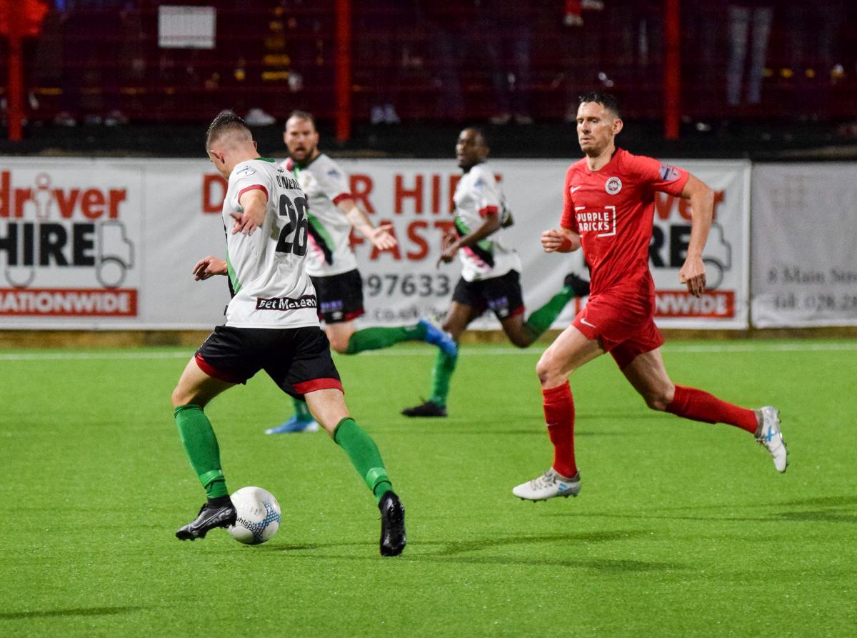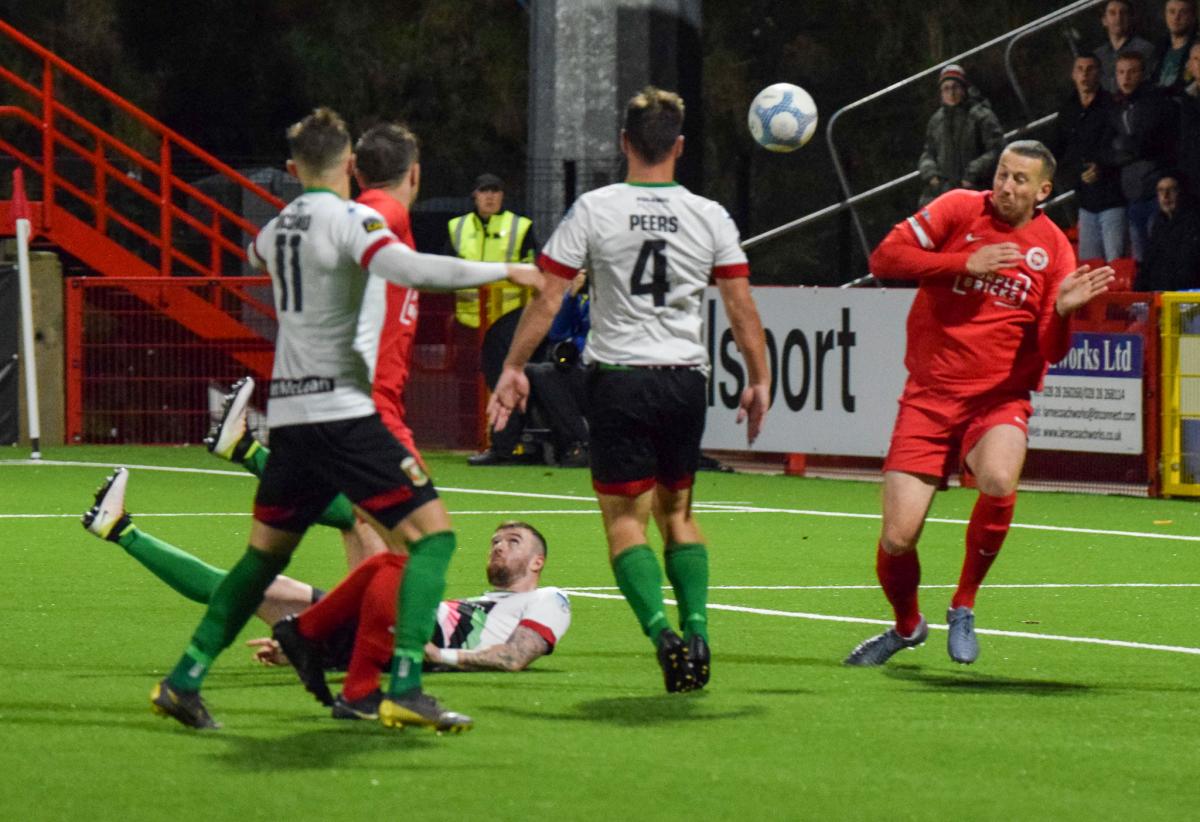 Larne look for a late goal but big Marijan Antolovic won't be beaten.