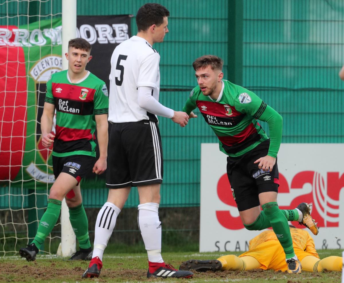 Perhaps the Glens had scored too early but from around the 20 minute mark they became careless and complacent allowing the home side back into the game. There was a rare opportunity for Jonny Frazer on 32 minutes but in general he was well marshalled by former Glentoran Seconds player Adam Calvert who had an excellent game.
