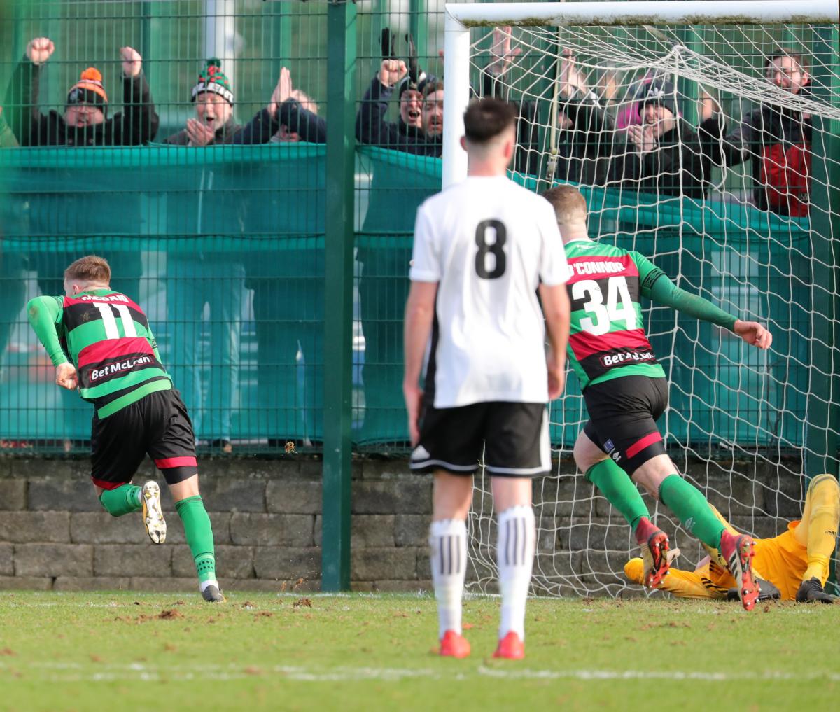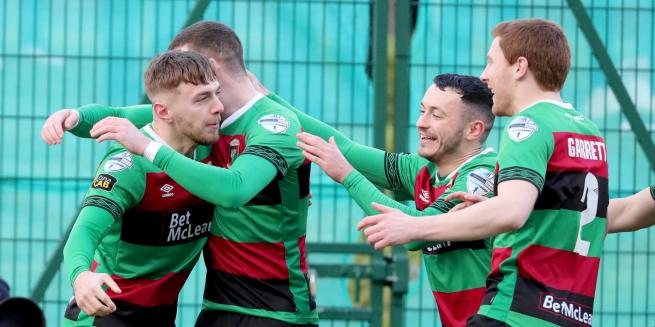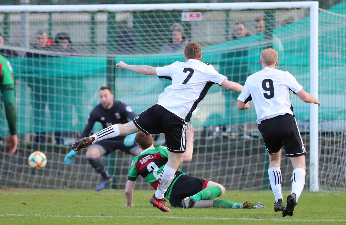 Chris Gallagher and Elvio Van Overbeek were introduced at the start of the second half in an attempt to give the Glens more of a cutting edge but it was the home side who almost snatched the lead. On 47 minutes a cross from the left by Ronan Young found Matthew Highes at the back post but his shot went into the side netting. A couple of minutes later and another cross from Young had to be cut out by Paddy McClean, the big defender almost putting the ball into his own goal!