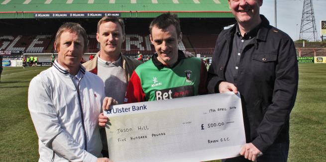 Officials from Raven GSC made a presentation to Jason Hill on Saturday prior to our Danske Bank Premiership fixture with Crusaders.