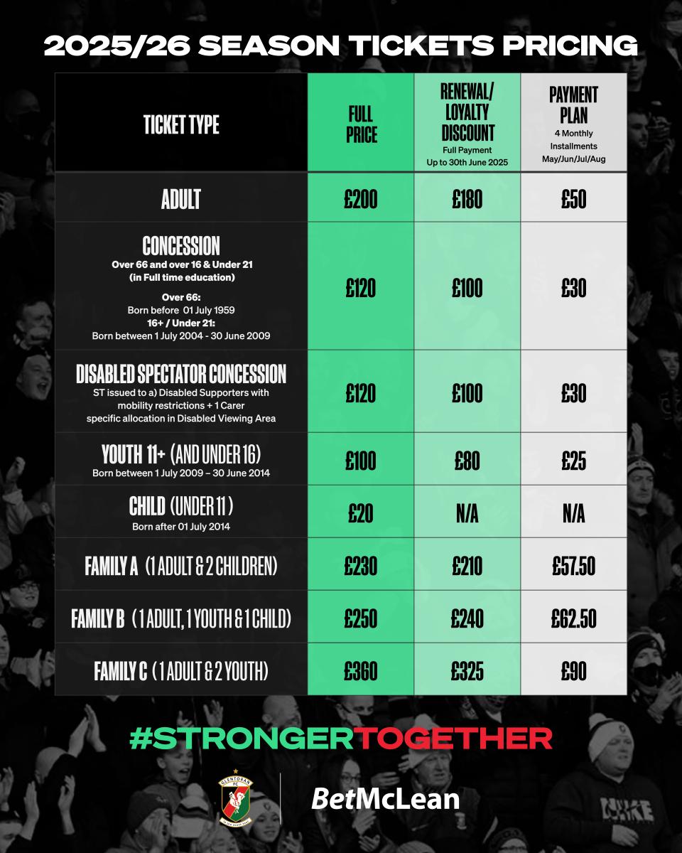 2025/26 Season Tickets are available to purchase via: www.glentoran.com/news/season-tickets-202526