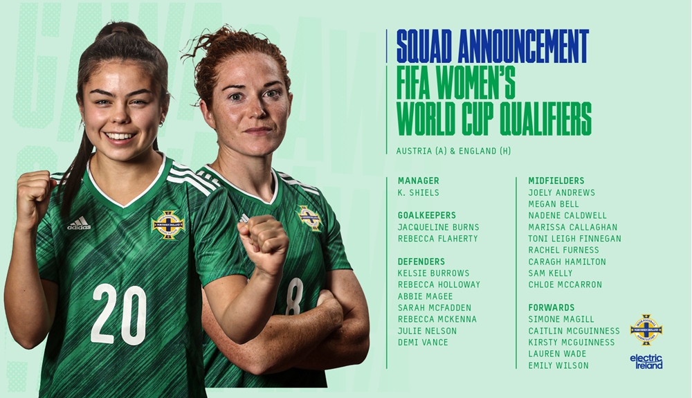 Midfielders: Nadene Caldwell, Chloe McCarron, Caragh Hamilton, Sam Kelly and Joely Andrews (all Glentoran Women), Marissa Callaghan and Toni-Leigh Finnegan (both Cliftonville Ladies), Rachel Furness (Liverpool Women), Megan Bell (Rangers Women).