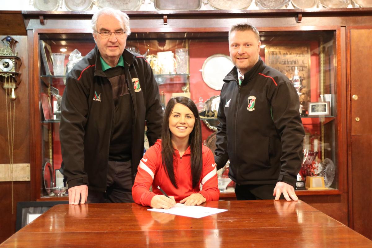 Glentoran Women’s double clean sweep winning captain Jessica Foy today made football history by signing the first professional contract for a female footballer with a club in Northern Ireland. Jess’ contract represents the start of a process of professionalising Northern Ireland’s most successful squad.