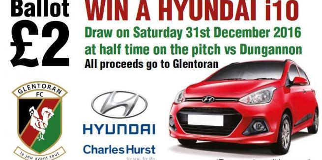 Saturday will see us draw the winner of our Car Ballot and one lucky person will be the owner of a brand new Hyundai i10 supplied by Charles Hurst Hyundai Dundonald.
