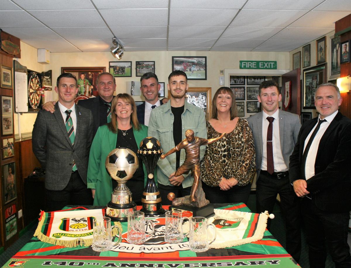 Also a new trophy was unveiled in memory of Roy Miller memorial for top goal scorer was presented to Jay Donnelly and finally a cheque was presented to Glentoran manager Mick McDermott.