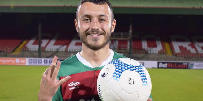 Even the fact that he is not getting the amount of game time he might at another club in spite of scoring a quick-fire hat-trick in his home debut in the League Cup second round tie against Ballyclare Comrades hasn’t put him off.