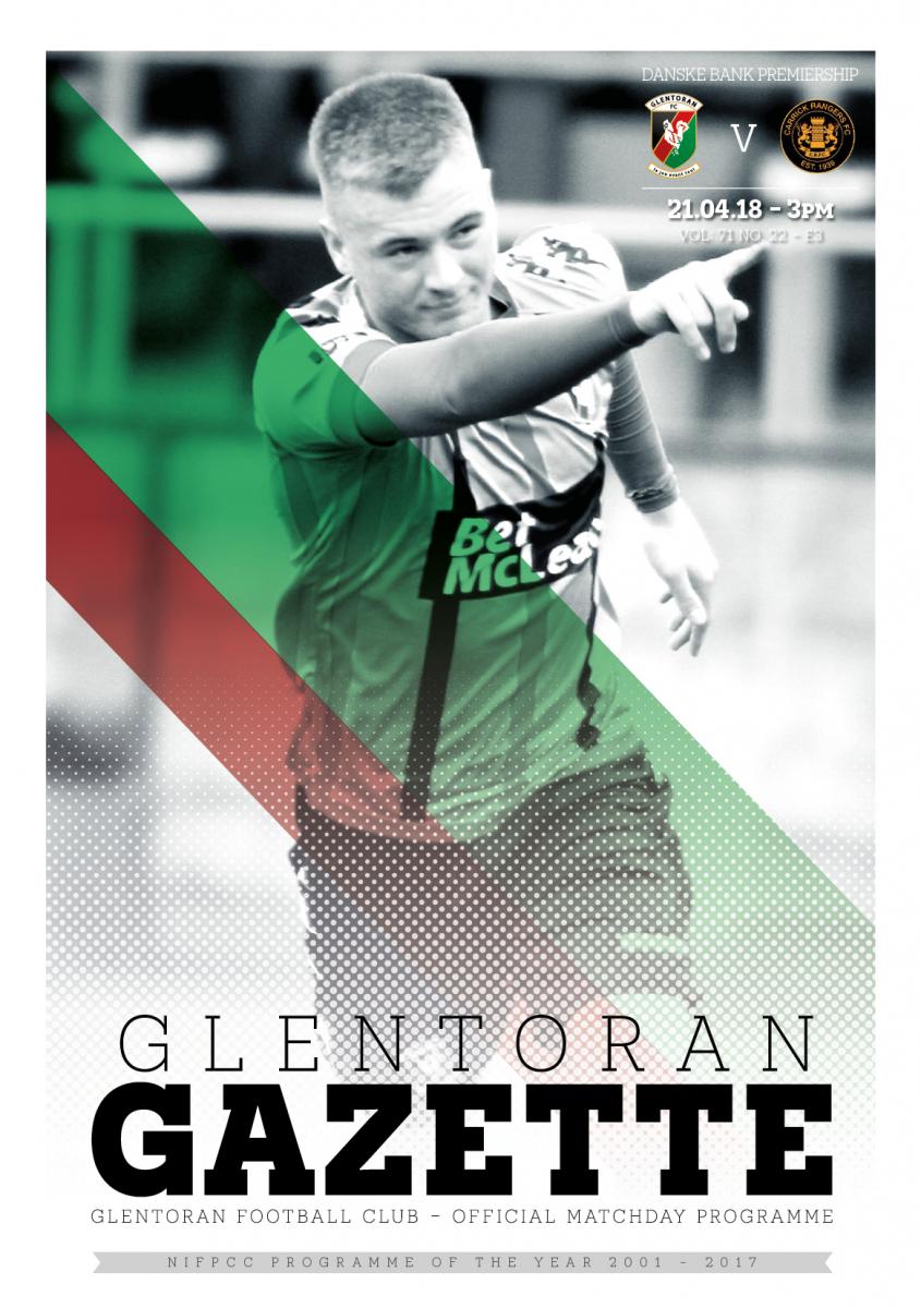 Don't miss the latest edition of your multi-award winning Glentoran Gazette at tomorrow's game against Carrick Rangers.  In a bumper 32 page issue we have the next part of Roy Downes' look at the split which rocked Irish football over a century ago, Philip Stevenson gives us the lowdown on the Legends' latest outing, we investigate the changes that will affect local clubs in European competition from next season, look at the start of the Danske Bank Women's Premiership, Brian McClelland gives his take on our European Cup clash with Juventus, Eddy Patrick interviews Kym Nelson and our interim assistant manager Kieran Harding plus all the latest news, views, photo action and stats.  Get them while they last!