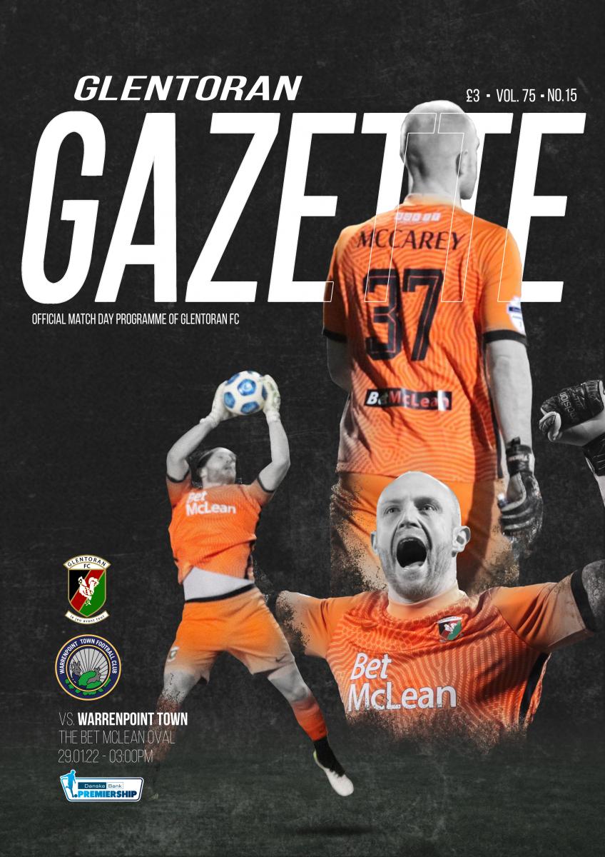 Goalkeeper Aaron McCarey features on Joe Burns and Beth Stafford’s cover of a Glentoran Gazette in which Norman Ternahan and Tommy Sewell review another big midweek win in words and pictures. Mick McDermott praises new boys Sean Murray and Michael O’Connor for settling in so quickly and pays tribute to Hrvoje Plum’s accuracy on Tuesday night while there’s a warning not to take Saturday’s opponents, Warrenpoint Town, lightly. The 40-page programme also includes a picture tribute to Elliott Morris, now in his 20th year at the club, and highlights the dangers of a shortage of match officials. Roy Downes has the story of the Glens first game against English opposition, Brian McCllelland tells of former Glens teenager Sammy Chapman’s conviction for match fixing, Eddy Patrick catches up with Glentoran Inclusion’s Mark Smith, Paul Vance looks across the Atlantic to assess Canada’s World Cup prospects while Henry Muldrew ponders how fans (and outsiders) view football. The Gazette, by the fans for the fans, is still only £3.