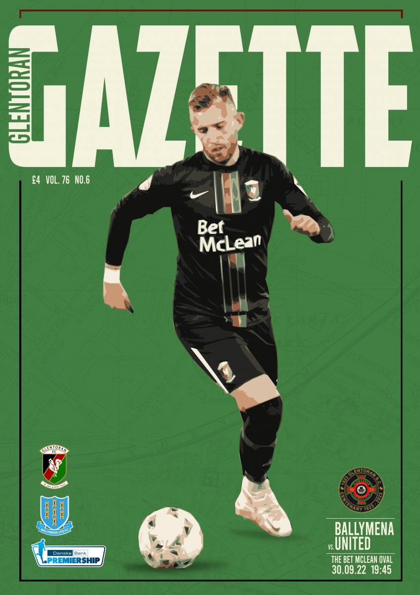 In another 40-page match programme for Friday night the Gazette team looks at issues on and off the field. We condemn those behind digging up the Conor McMenamin video and ask is it time for the IFA to invest in the full-time game here while long-standing supporter Stephen Reid has a plan to end the scramble for tickets at away games. Mick McDermott is wary of Ballymena while Bill Wray is hoping the Sky Blues can turn around their dismal early season form. New boy James Singleton tells Matthew Brown he found adjusting to the full-time game tough but worth it, Philip Stevenson reports on a rare defeat for the Glens Legends while Bobby Burns answers the Gazette’s questions. Brian McClelland focusses on a few of the many Dubliners who have worn the red, green and black while Henry Muldrew’s English odyssey begins in the football hotbed of Newcastle-upon-Tyne. As always Norman Ternahan and Tommy Sewell review the latest action in words and pictures in an issue which has Ally Roy as Beth Stafford and Joe Burns’ cover star. The £4 Gazette, the Irish League’s leading matchday programme, is by the fans for the fans.
