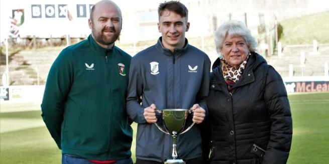 Jonathan Russell received yet another individual award for his breakthrough performances last season yesterday when he was presented with the Westbourne Glentoran Supporters Club Player of the Year award for 2023/2024.