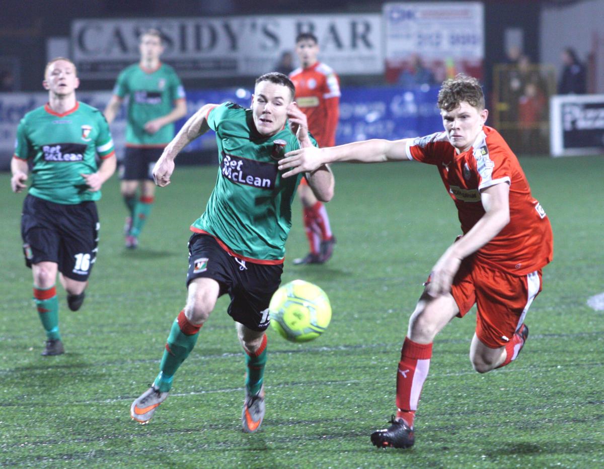 With this being the first Irish League game shown on Sky Sports in a couple of years, both teams will have wanted to show what they could do in front of a nationwide audience. Glentoran, after a solid if a little frustrating point on Saturday against Glenavon, were looking to claw their way into the top six ahead of the approaching league split. Unfortunately, in the warm-up Marcus Kane suffered an injury and was replaced by Aaron Harmon.
