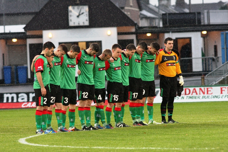 Ten man Glentoran moved into third place in the table after continuing their impressive run of form with this hard fought victory at Stangmore Park. Manager Eddie Patterson was forced into one change from last week’s trip to Ballymena, Stephen McAlorum coming in after suspension to replace Jim O’Hanlon who was suffering from a hamstring injury.