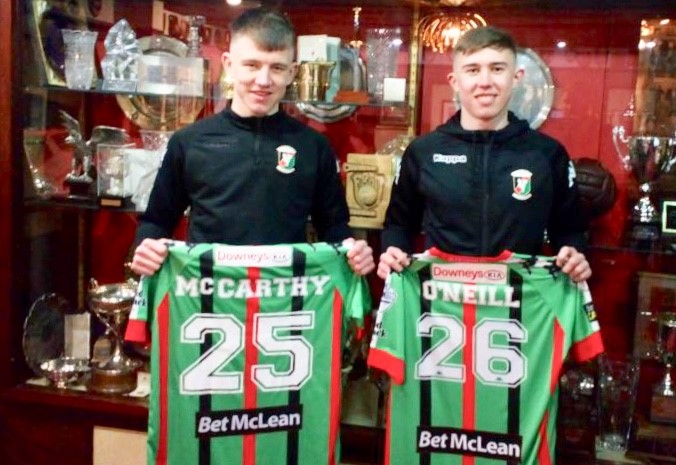 The club is delighted to formally announce that two of our top young prospects – James McCarthy and Paul O’Neill – have signed their first professional contracts for the club. We believe Paul and James are the first players born in the 21st Century to sign as professionals for Glentoran.