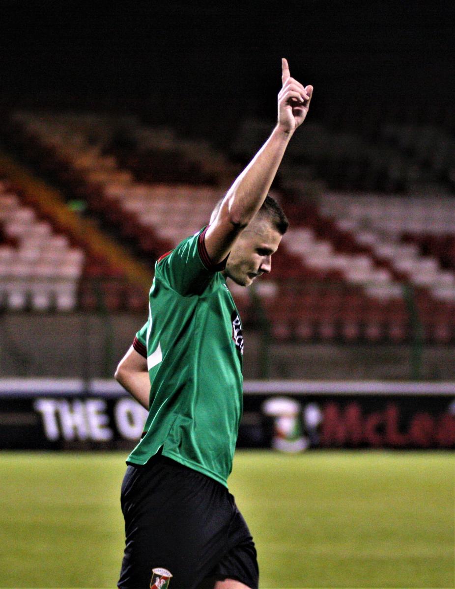 The first half was a cagey affair of few chances, with Glentoran enjoying the lion’s share of possession but struggling to break down a resolute Crues defence.