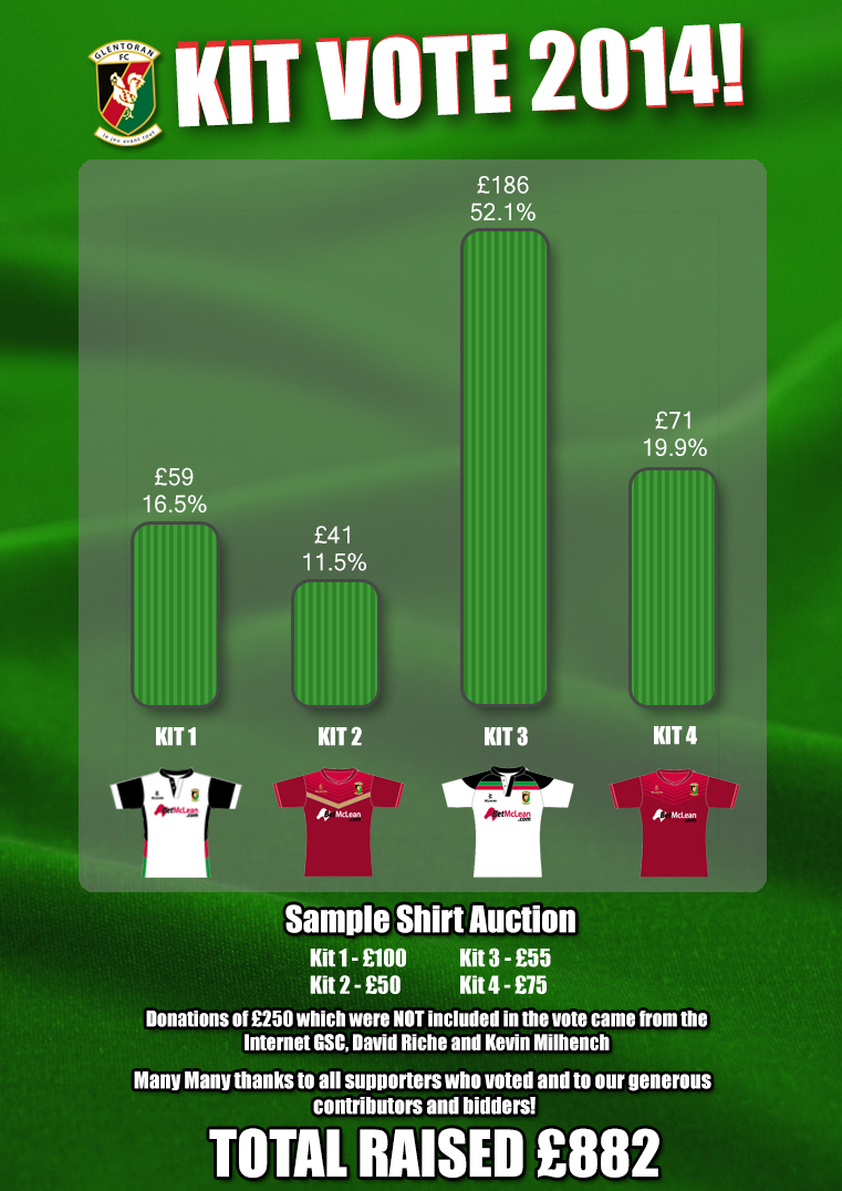 You can now vote online for the 2014/15 away kit. Votes cost £1 each and ALL money is going towards first team medical expenses. Voting will close at 12AM on Wednesday night and the result will be announced on Thursday.